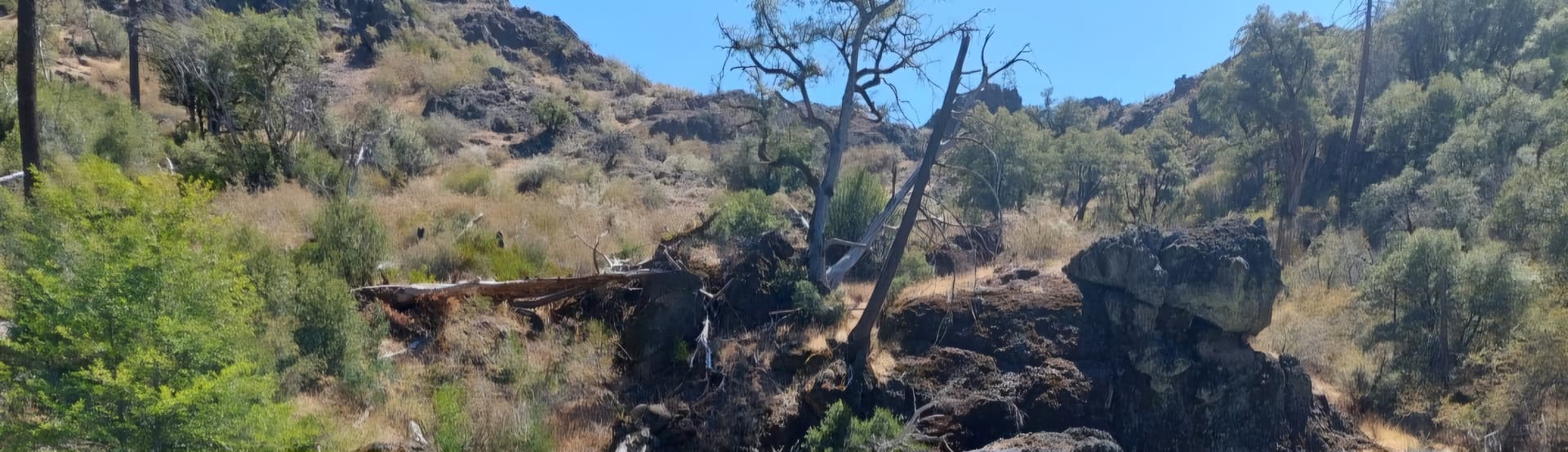 There is still a lot of standing dead from previous fires, too. Here are a few pictures of the terrain taken from Deer Creek Falls area just a couple of weeks ago.
