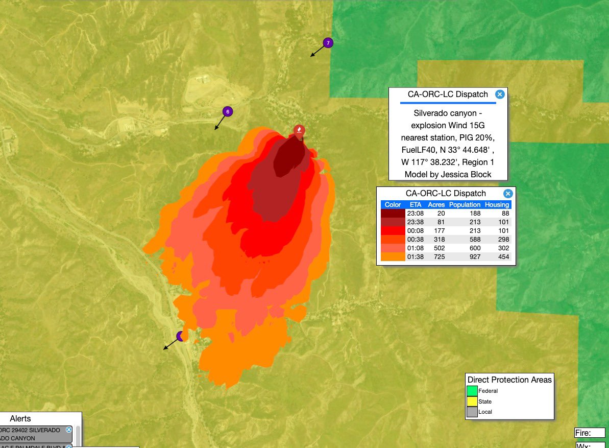 Fire is now moving into Williams Canyon. Will hit the Silverado Fire scar. Extreme fire behavior.