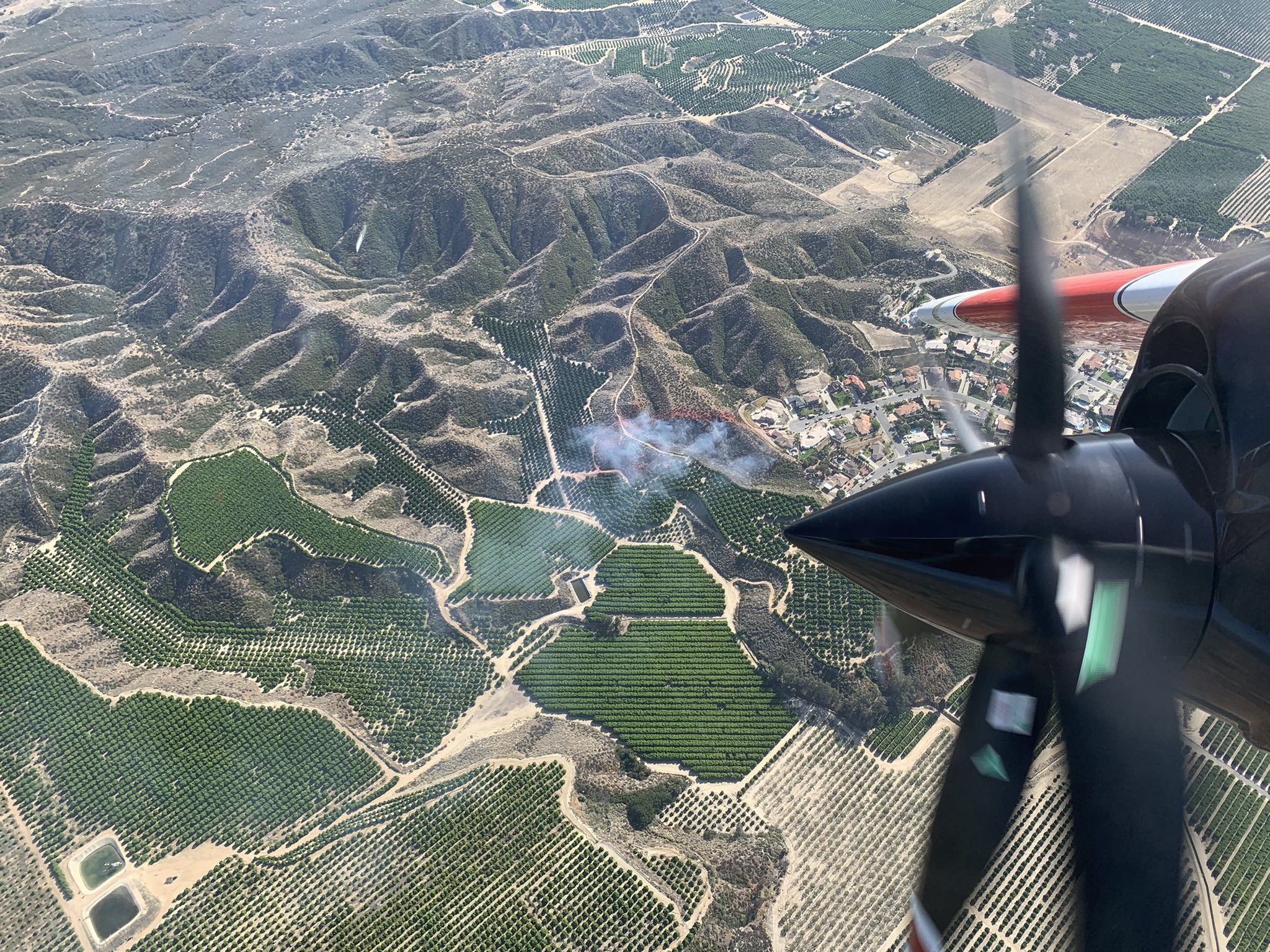 Report on Conditions: Fire is in a canyon, between the subdivision and the orange grove. potential for 10