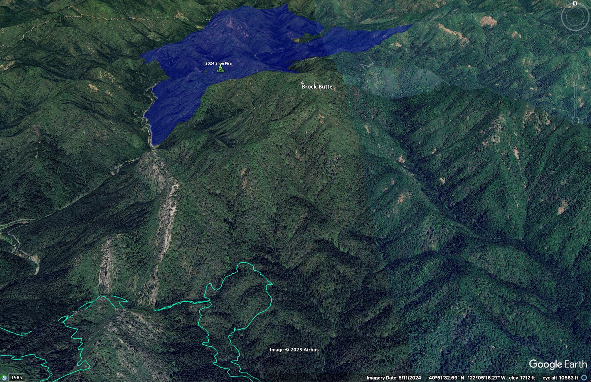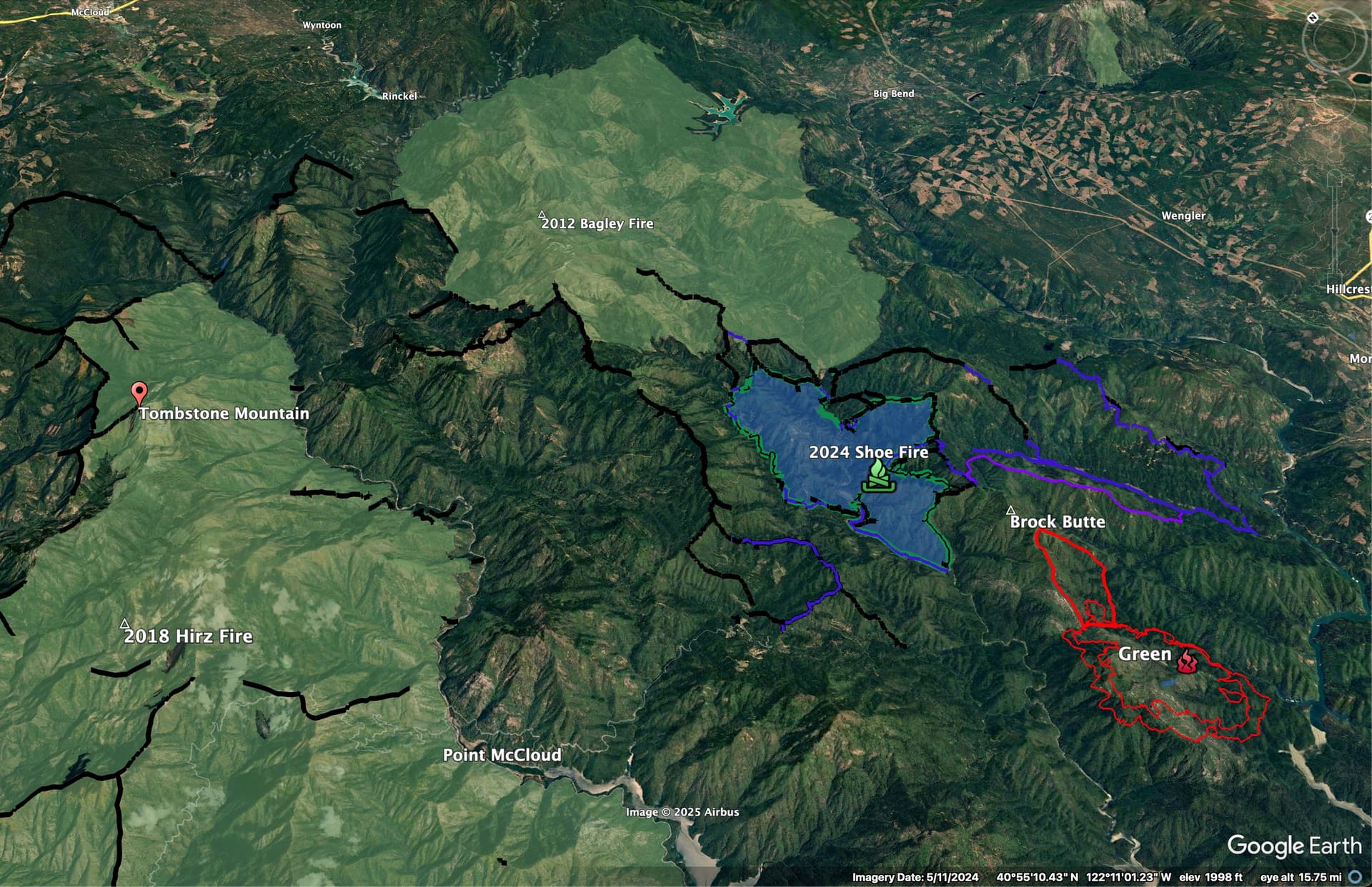 Here’s the Shoe and Hirz dozer lines, with Hirz and Bagley Fires.