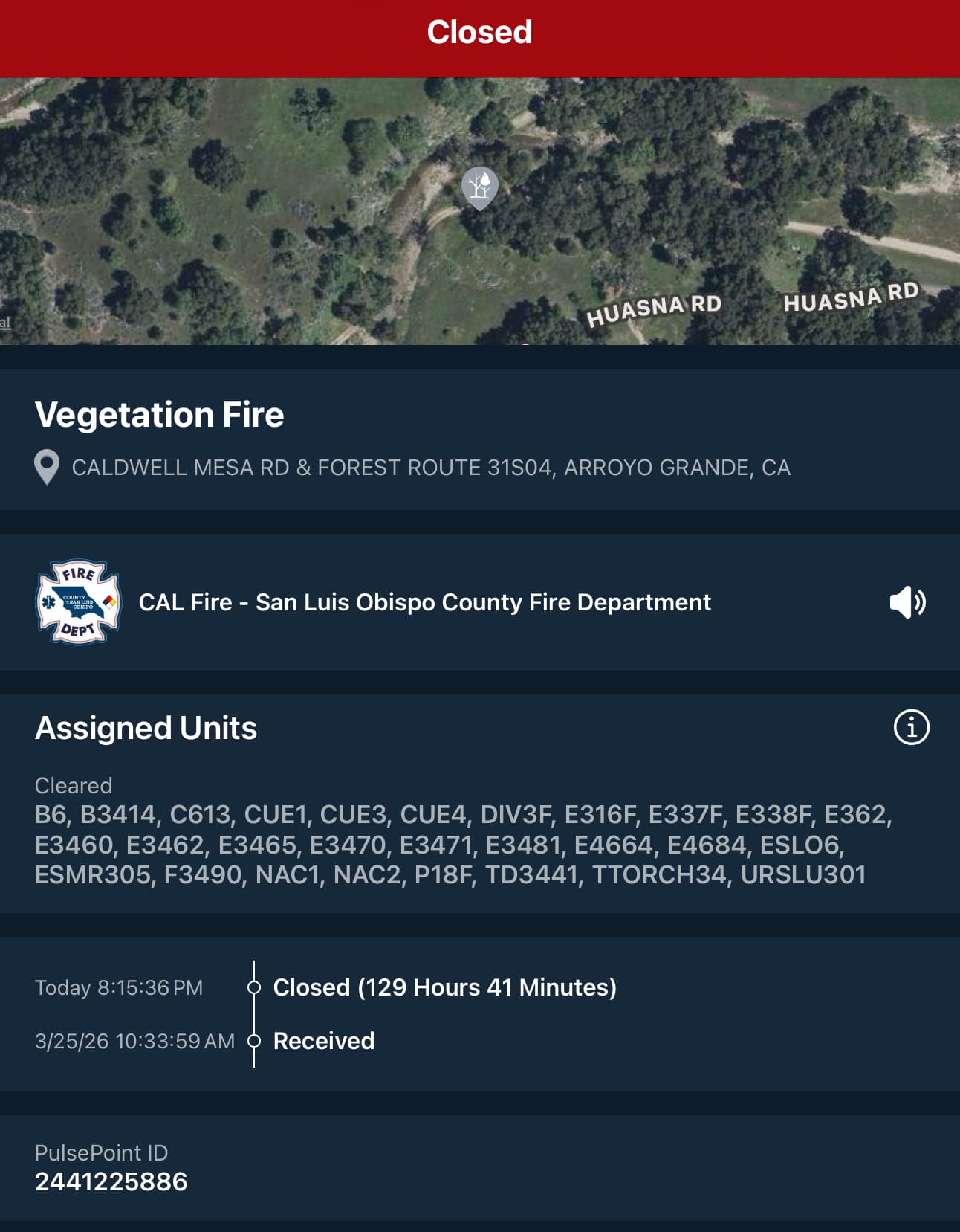 this incident finally appeared on pulsepoint as terminated: