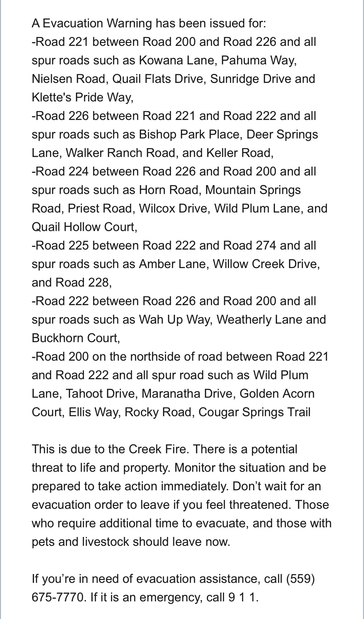 New Evacuation order for North Fork. Everything East of Rd 274 along Rd 225. The old mill site that has been ICP for multiple incidents is just East of Rd 274, off of Rd 225, if that helps some of you place these Evacs