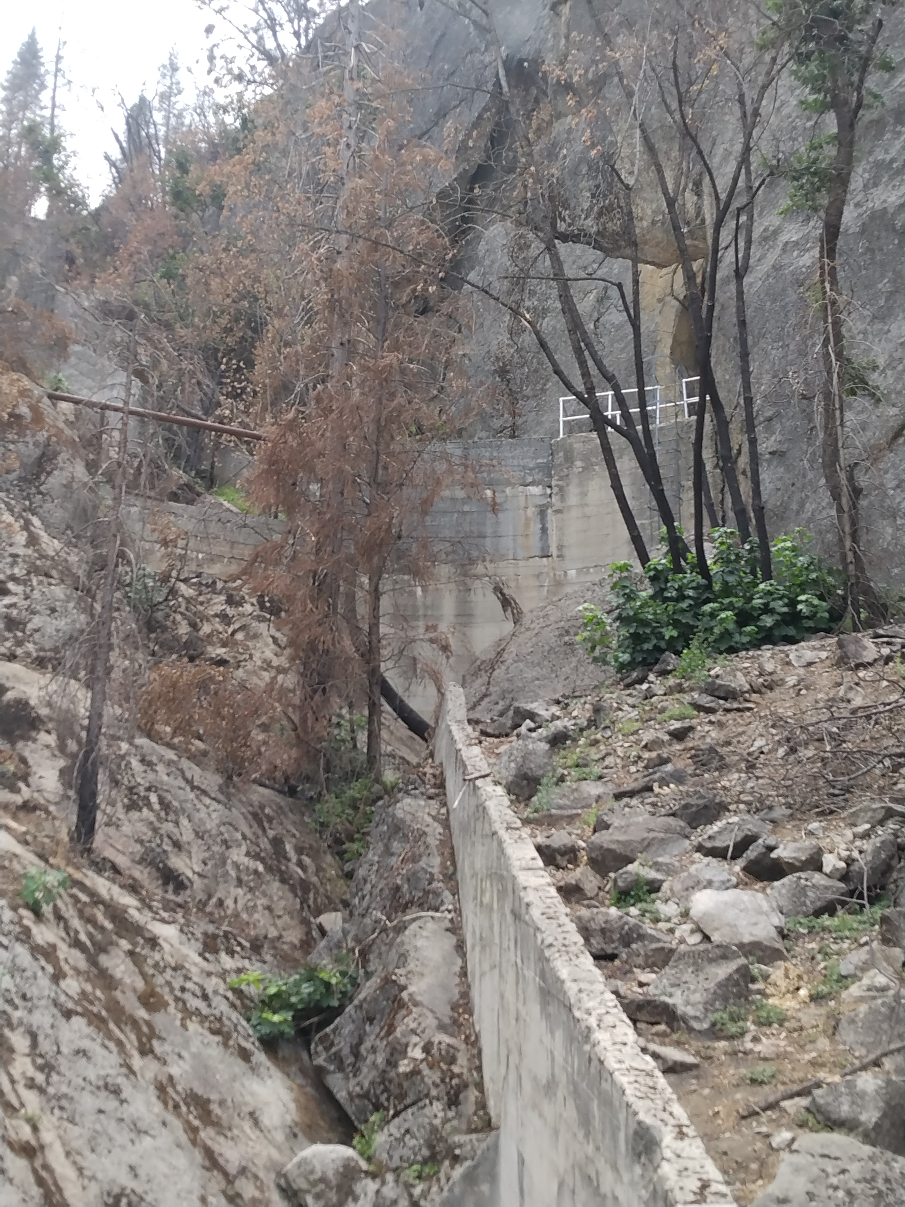 8s08 road/old railroad grade more high severity burn with lots of little greenery coming back and some old school cool Socal Edison architecture. 4 pic shows part of the penstock for powerhouse 2 & 2A.