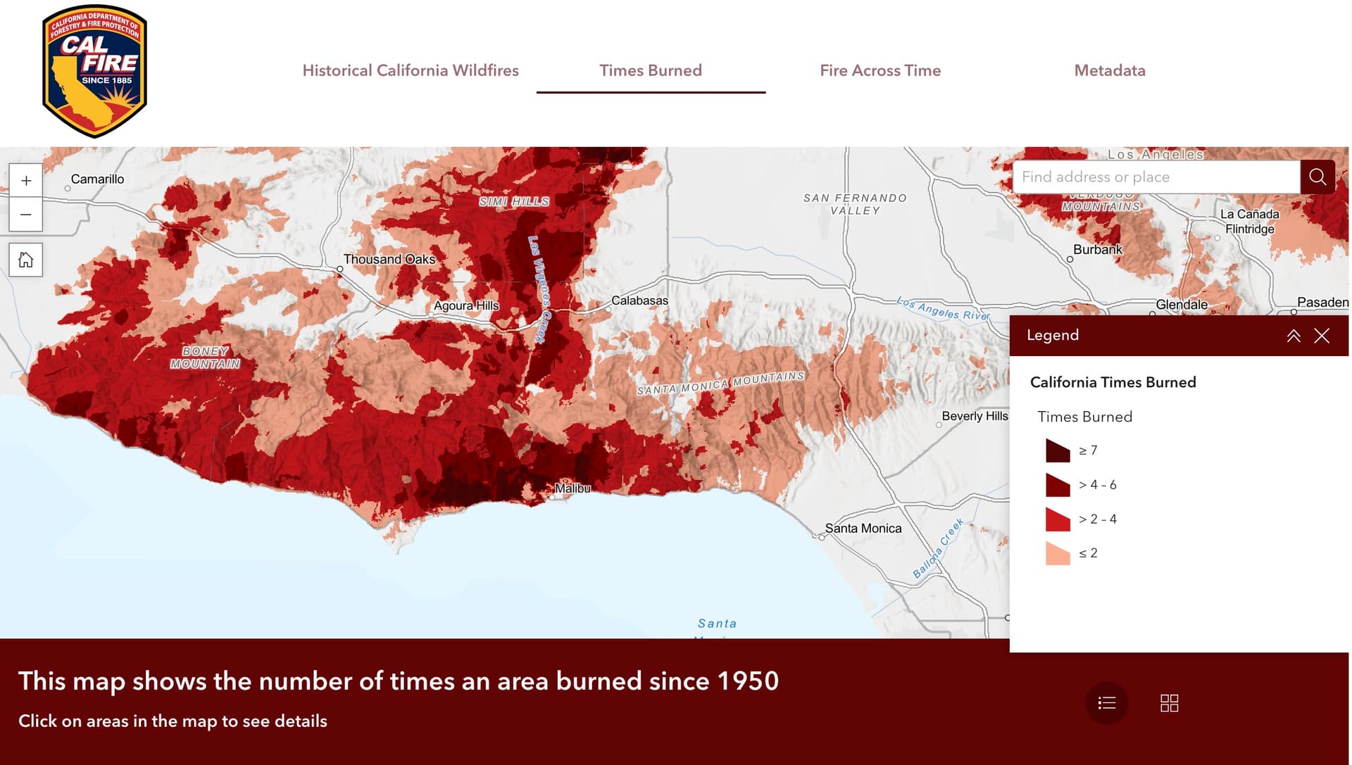 Second, i was looking for a CA state map with mutiple layers of all the fires of maybe 10,20 or 30 years past to see the areas of burn scars in different shades. I have seen something like this before just not recently.