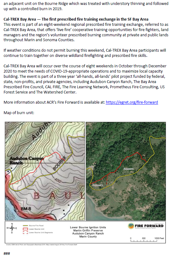 Does anyone know if there is prescribed fire in West Marin off Bolinas ridge Highway one?