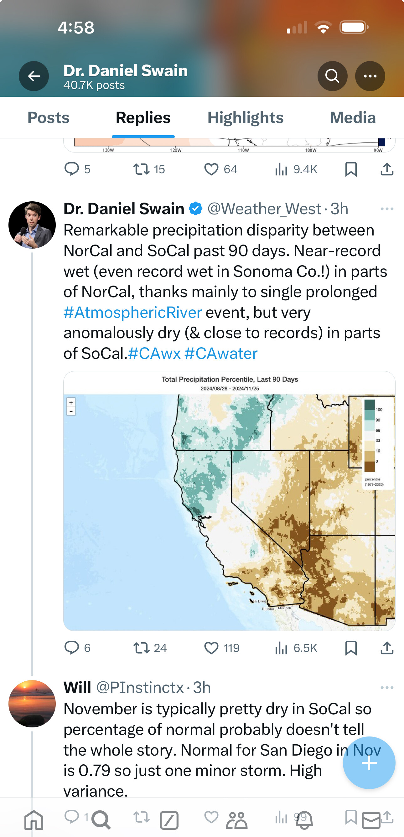 For Southern California, with the frontal boundary washing out and bringing very little precipitation so far the potential will exist for receptive fuels overlapping the climatological peak of Santa Ana wind season which is now into December. The last event changed into ridging over us with the bomb cyclone into the North West.