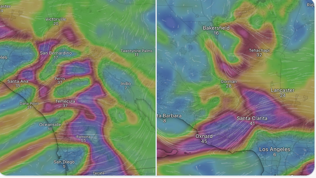 It’s important to highlight that this event has a significant East wind attached to it which traditionally favors San Diego County during the back half of some Santa Ana wind events. I’m particularly concerned for that county as it hasn’t gotten hit too hard from wimd events so far this year and has had a good amount of ignitions this year (particularly of the border type). For what it’s worth. All eyes on the alert Ca network.