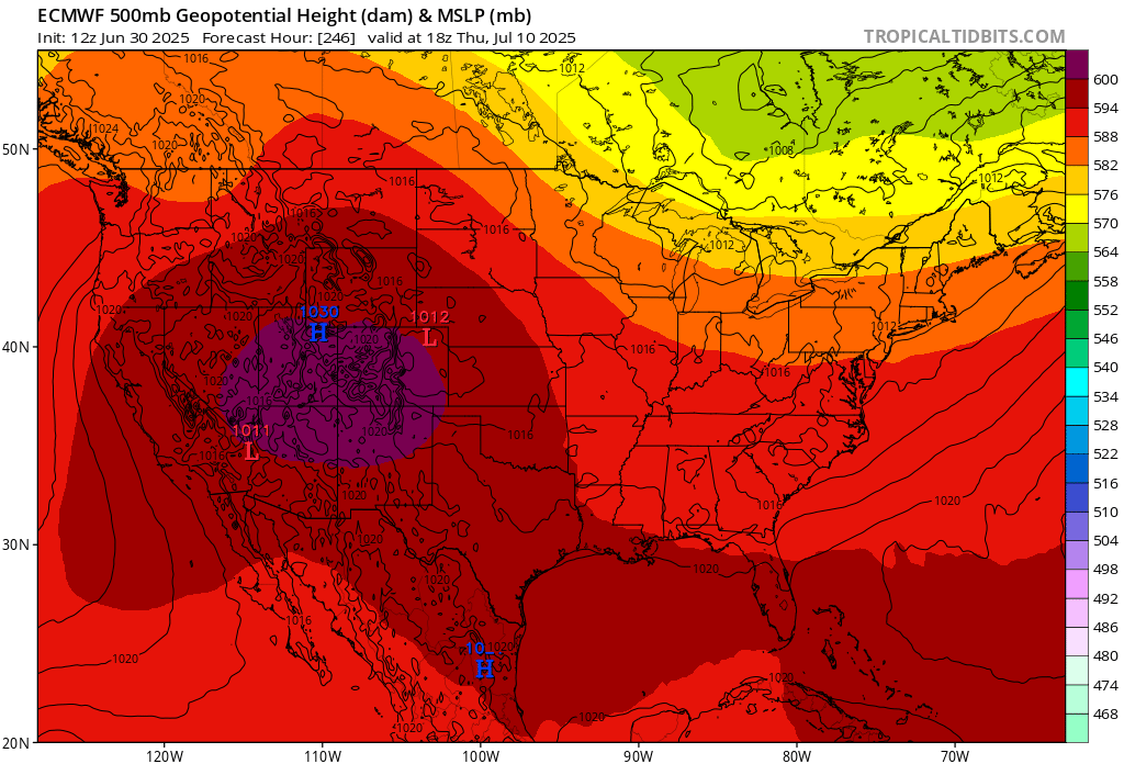Forecast models are in good agreement for major West coast heatwave starting around July 8th lasting potentially for 3-4 days.