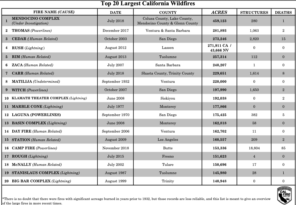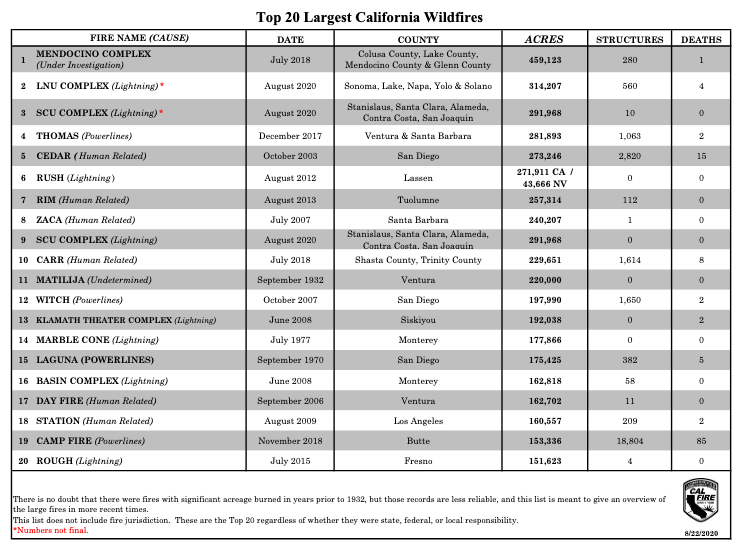 For those keeping track… To get onto the “top 20 list” for largest recorded wildfires in California, you need to beat 140,948 acres…