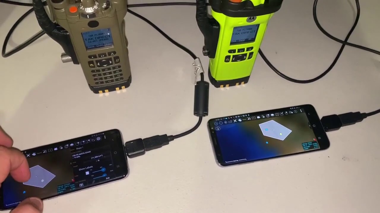 We had some cool success this past week working with @DC3075 testing ATAK in cellular denied environments and using VHF radio to send positions, polygons, points and chat. Here is a couple pics and a video of the set up. This is done over a Motorola APX Radio using a side program running on the Android device called Plugnix from KeySquare Labs. It’s done using digital P25 protocol. The cool thing is the data channel doesn’t have to be the same as your voice channel. With dual and Tri band radios the possibilities are pretty cool. The next step is testing over repeaters. We got 12 kilometers direct line of sight passing the data. Basically if you can hear someone on a direct channel you would be able to see them in ATAK.